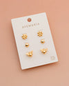 Set compuesto por tres pares de aretes tipo topo con diseños variados: flor margarita, media esfera lisa y abeja mini, elaborados con aleación de metales y baño de oro, finalizados con laca de alta resistencia que ayuda a conservar su brillo. Hechos en Medellín, Colombia, sus tamaños entre 7 mm y 11 mm los hacen ligeros y versátiles, ideales para usar juntos o por separado en el día a día. Cuentan con cierre tipo mariposa con silicona de alta resistencia, que brinda un ajuste seguro y cómodo.