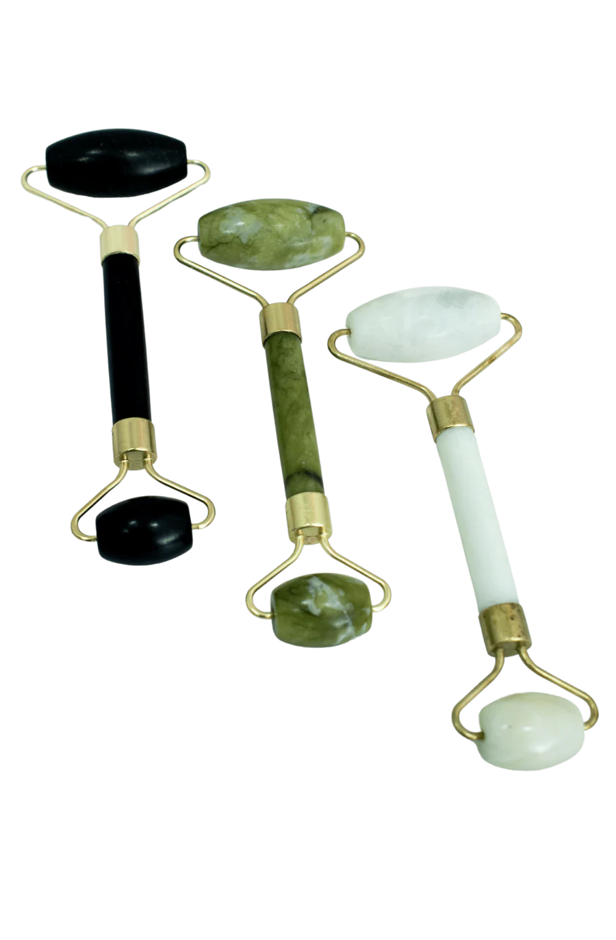 Ojos: usa la piedra más pequeña de tu roller y colocarla bajo tus ojos. Masajea desde el interior hacia el exterior. Repite este movimiento unas 5 veces.