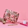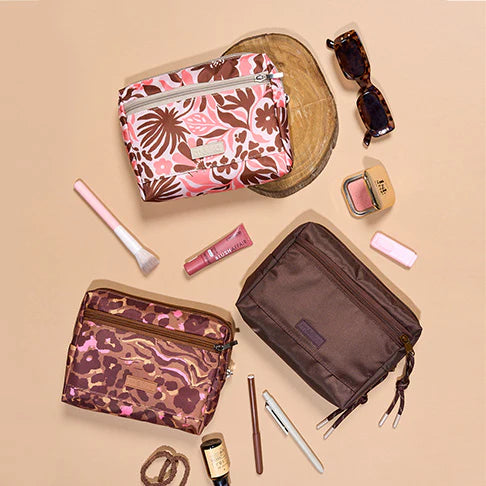 Cartuchera con un compartimiento grande, dos bolsillos pequeños internos y un bolsillo mediano en el exterior. Ideal para la oficina o la universidad, o también para usar como cosmetiquera u organizador pequeño para viajes cortos.