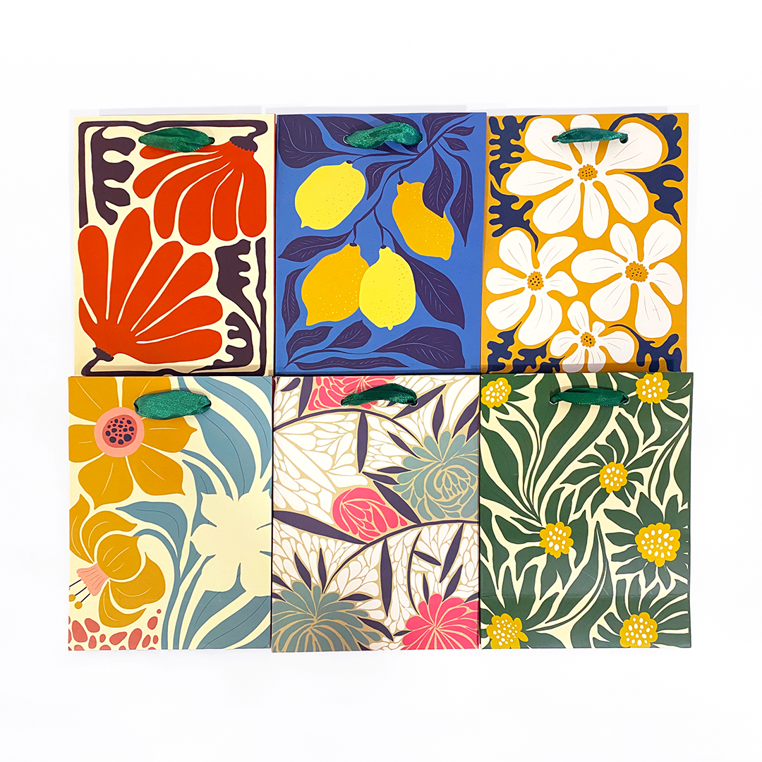 Cada bolsa tiene asas resistentes y estampados únicos que harán tu obsequio aún más memorable.