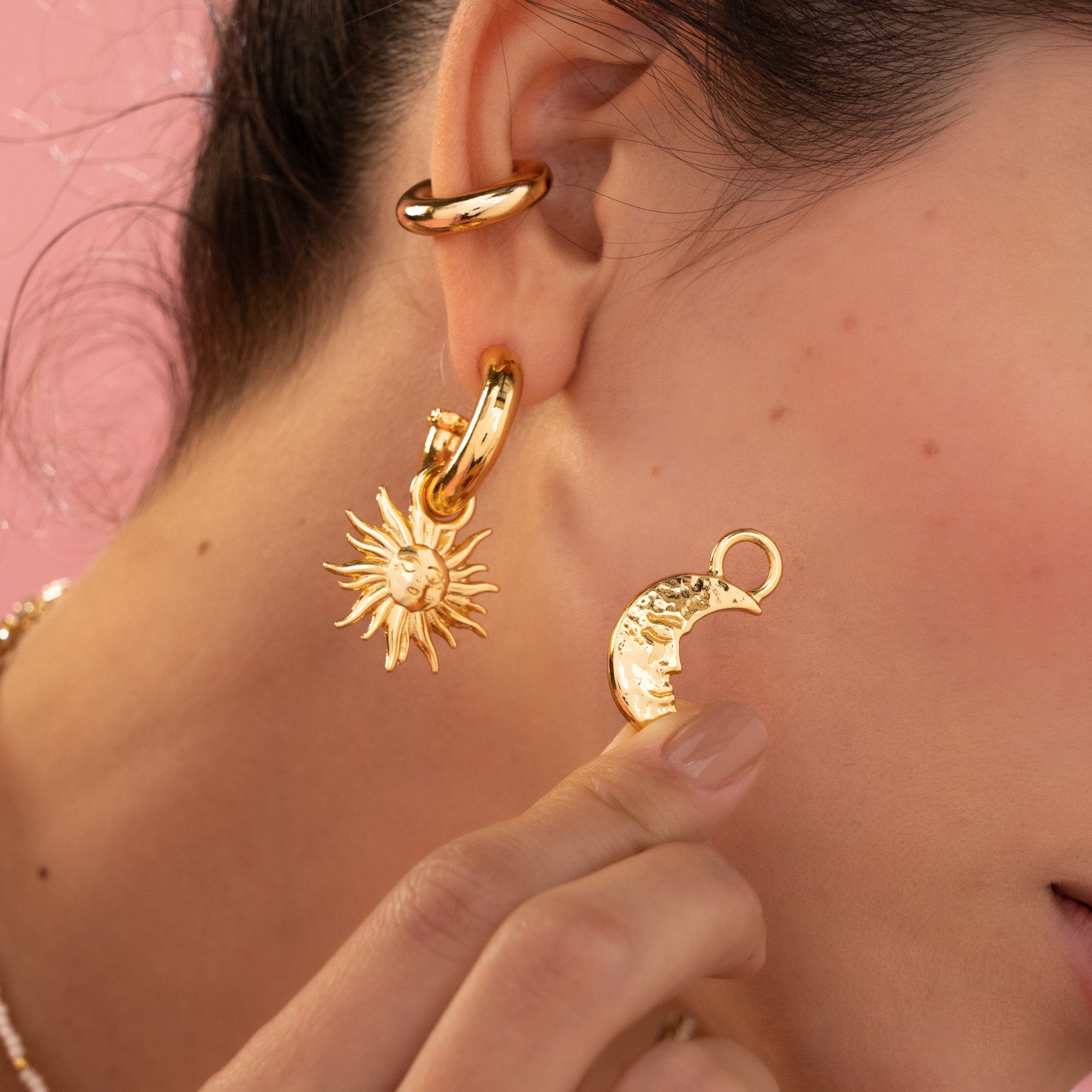 - Incluye: 1 par de candongas con 4 dijes de sol y luna intercambiables