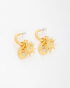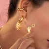 Candongas luna y sol avemaria, elaboradas con aleación de metales y baño de oro de 24k, finalizadas con laca de alta resistencia, su tamaño pequeño las convierte en un accesorio versátil, ideal para el uso diario o para combinar con otros aretes y crear looks en tendencia.