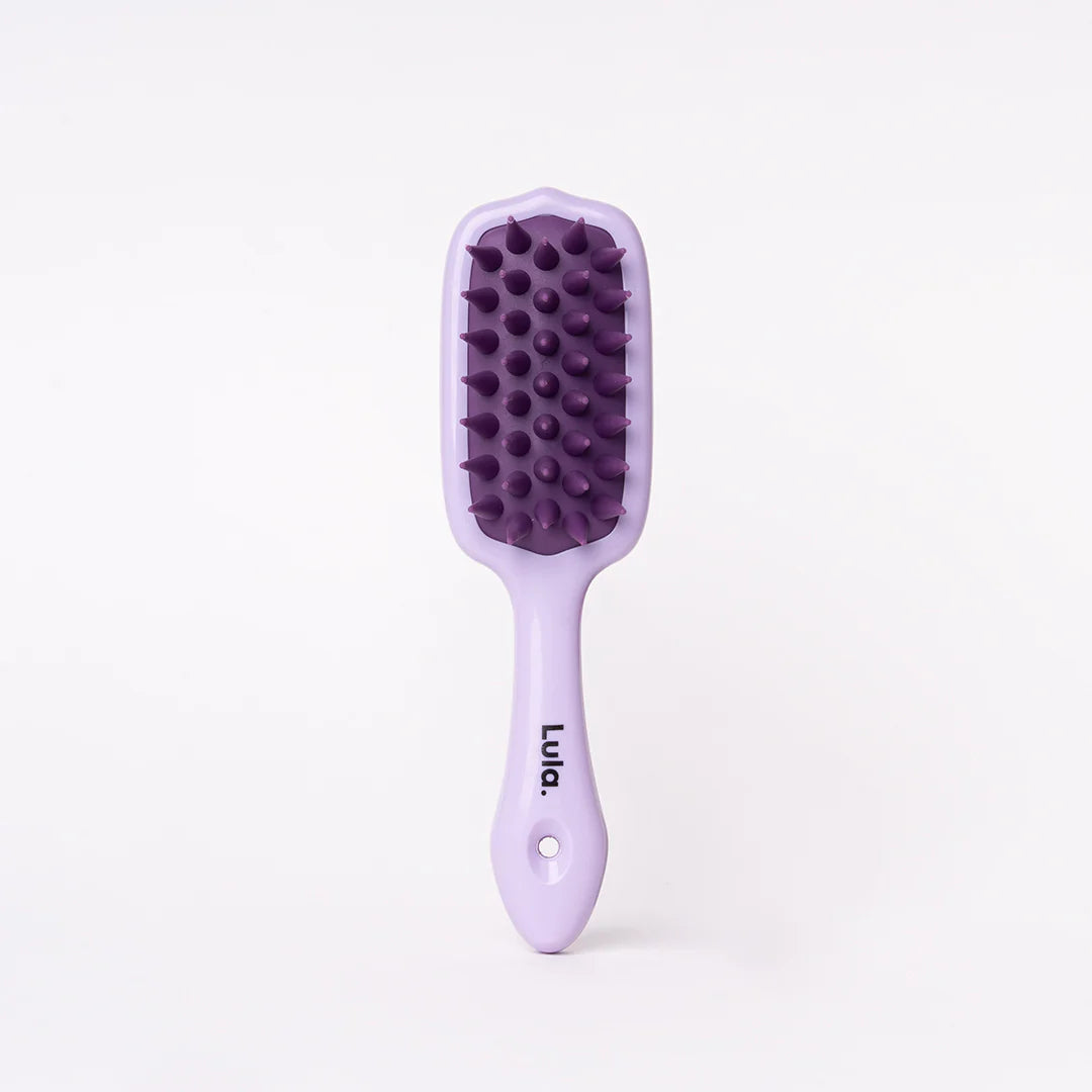 Este es un cepillo masajeador capilar de silicona con mango ergonómico, diseñado para estimular el cuero cabelludo, mejorar la circulación y facilitar la distribución uniforme de productos capilares.