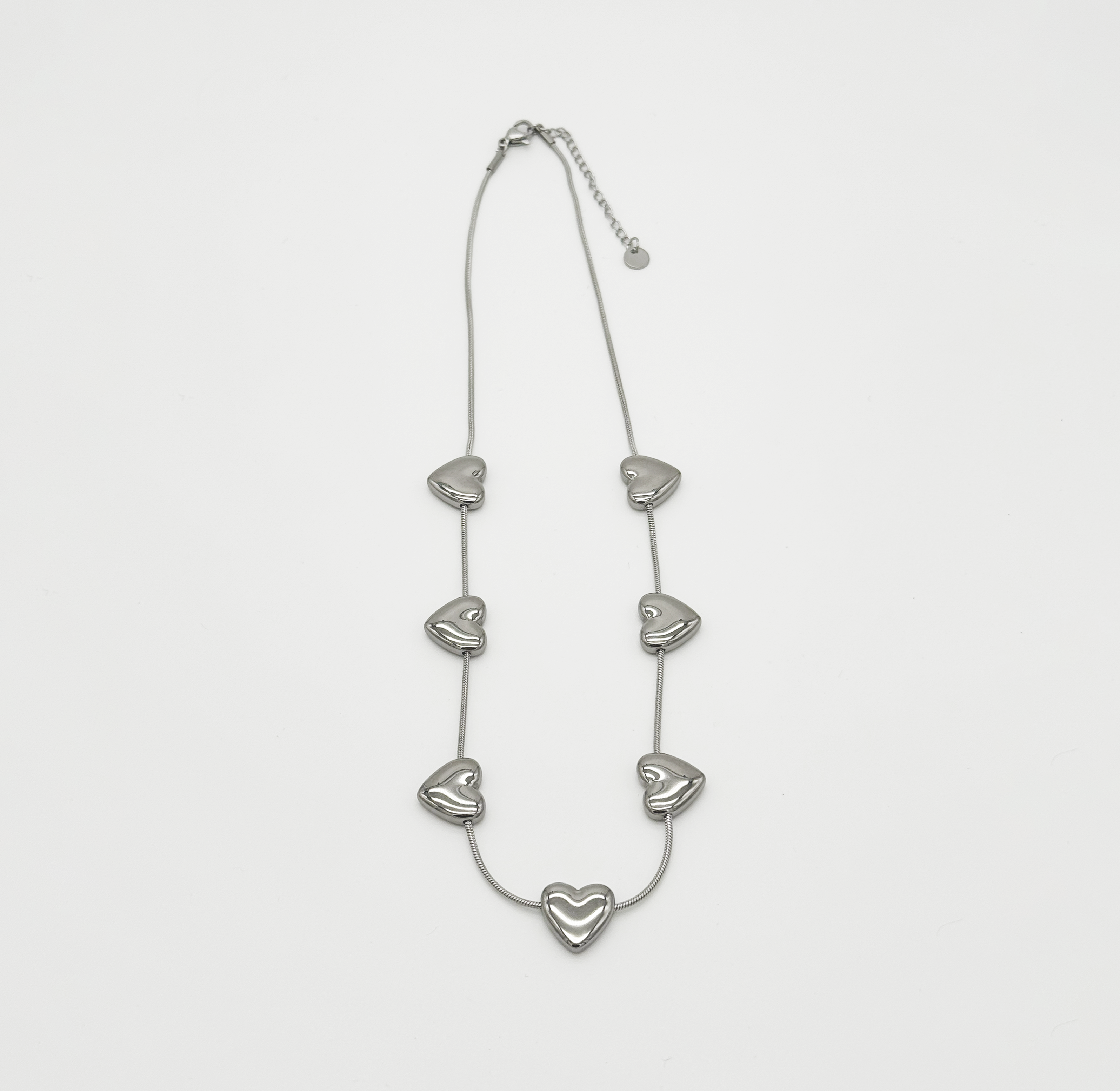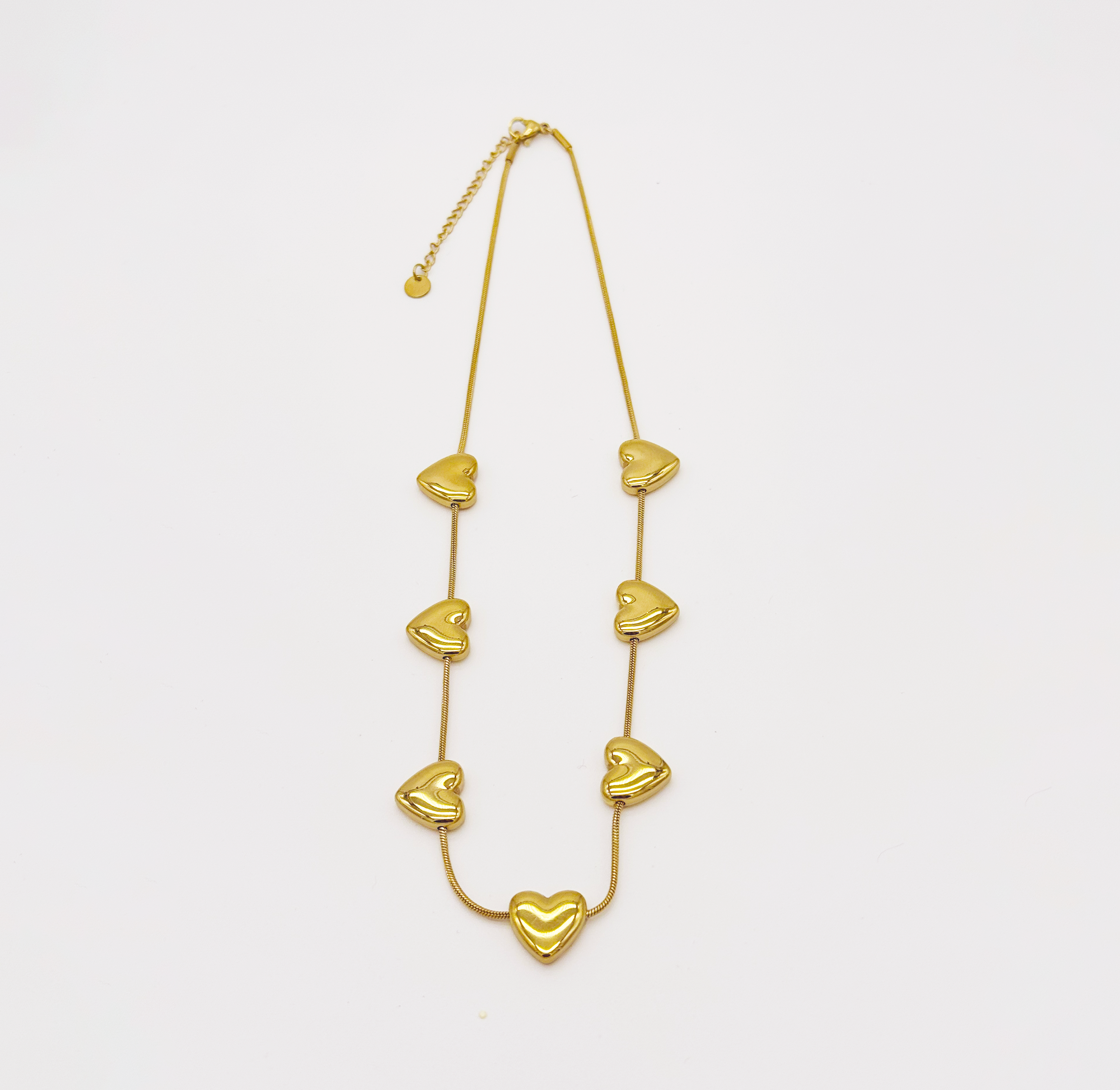 El Collar Multicorazones en Acero Dorado y Plateado es una pieza delicada y romántica que destaca por su diseño equilibrado y versátil. Está elaborado en acero inoxidable, un material resistente y duradero, con acabado dorado y plateado que aporta brillo elegante y una apariencia moderna, ideal para el uso diario.