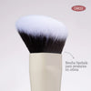 En un extremo, cuenta con una brocha de cerdas cortas, densas y semi rígidas, ideal para aplicar base líquida o en crema con alta cobertura, excelente difuminado y mínimo desperdicio de producto.