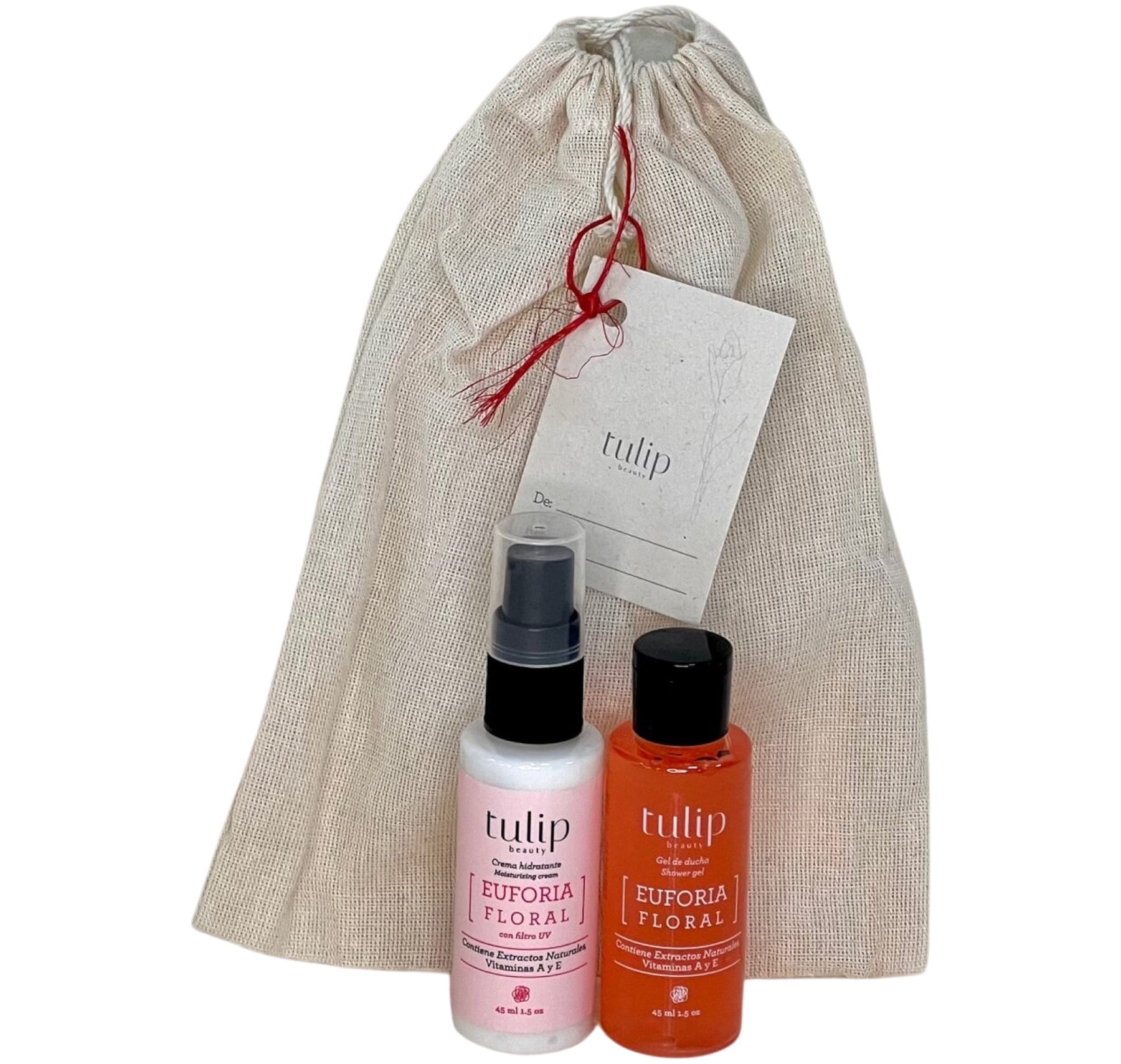 Crema Hidratante Euforia Floral (45 ml): textura ligera, aroma floral suave y piel suavemente hidratada.