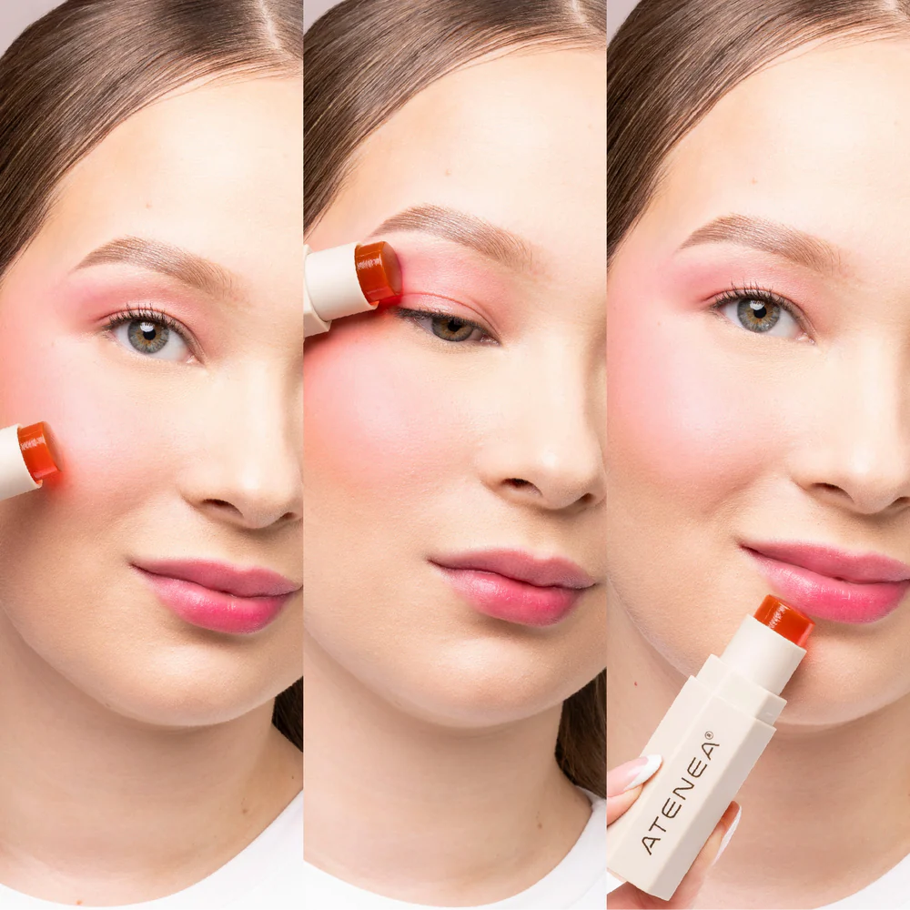 Los stick de Atenea Collection tienen textura cremosa, con fácil difuminación y de alta pigmentación, por lo que te recomendamos ir construyendo la tonalidad que deseas. El rubor en este caso aporta color a tu rostro, también puedes usarlo como sombra y labial, su tamaño es muy práctico para llevar en la cosmetiquera.