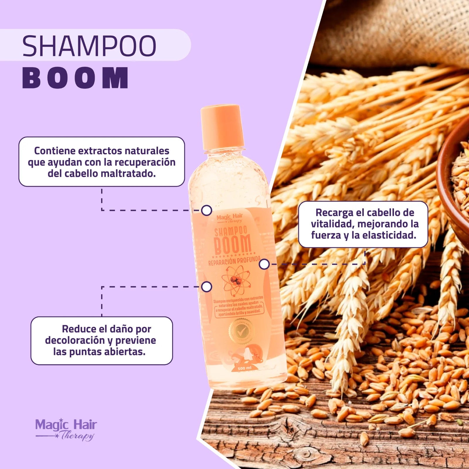 Shampoo BOOM Recarga el cabello de vitalidad al instante.
